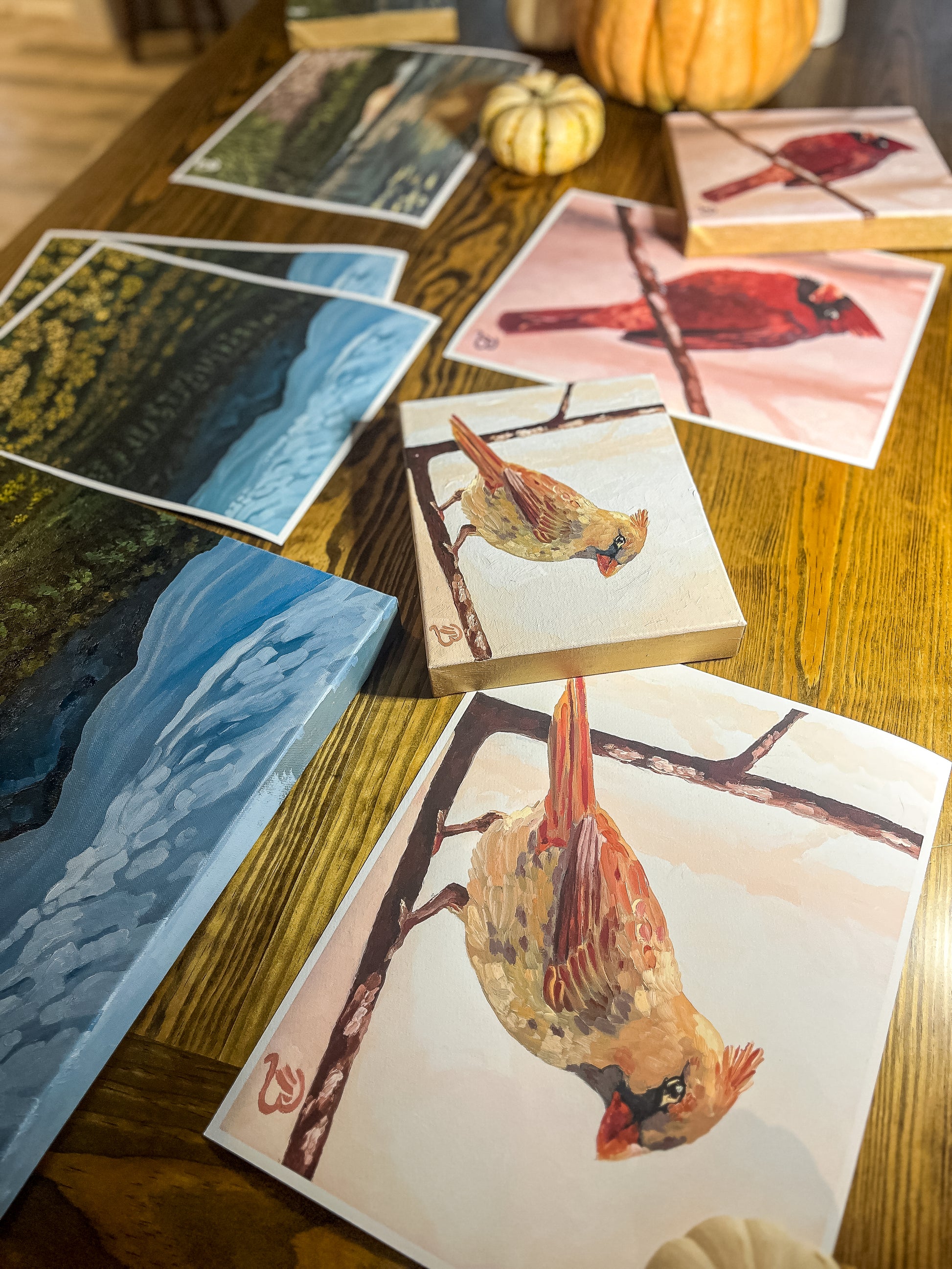I truly enjoyed painting this sweet little bird — her earthy tones, soft feathers, and gentle presence embody the peaceful rhythm of November. The female cardinal often doesn’t receive as much attention as her fiery red counterpart. Yet, she is a masterpiece all her own — a quiet reflection of nature’s understated beauty. When painting this cardinal, I felt like she was welcoming me into November.